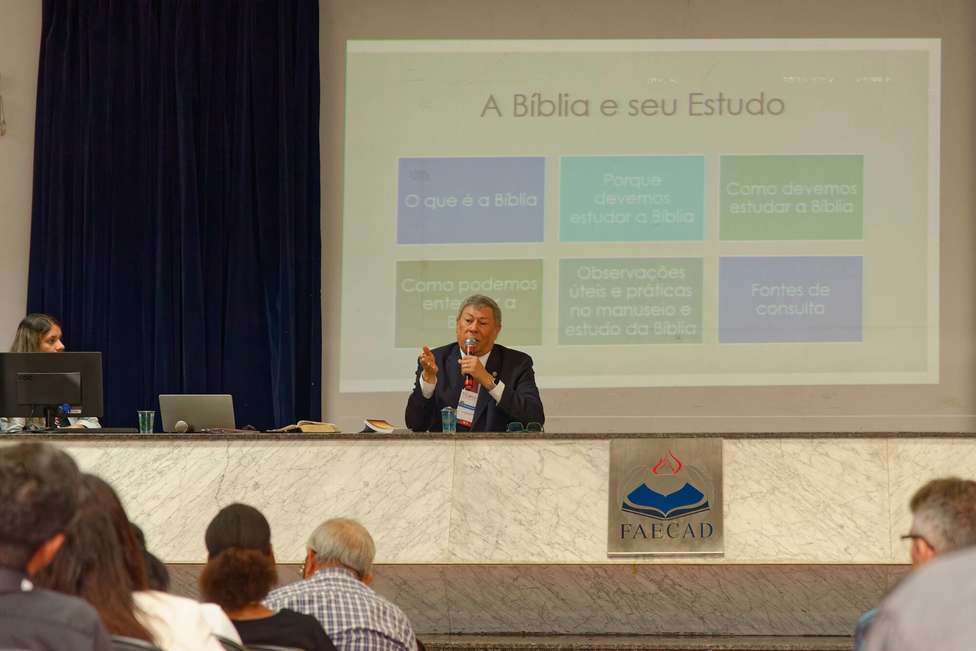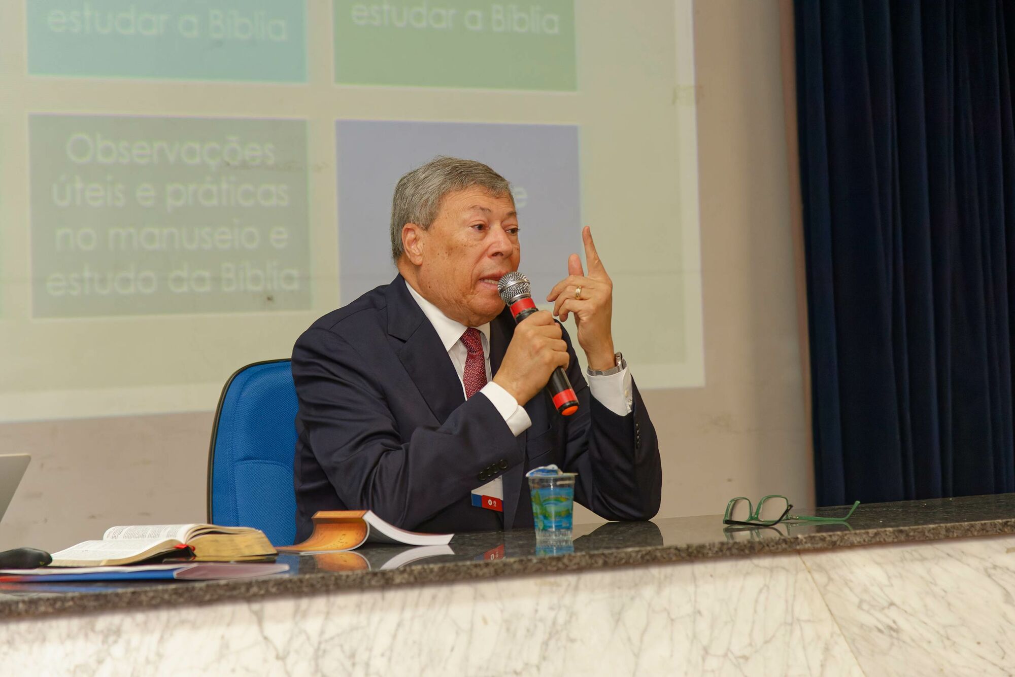 O pastor Esequias Soares ministrou a segunda aula sobre Bibliologia e agradeceu a oportunidade de palestrar pela primeira vez no CAPED. “A Bíblia é a Palavra de Deus, ilumina nosso caminho, dá sabedoria aos simples e é único livro que deve ocupar a mente das pessoas. Essas são algumas razões de estudarmos a Bíblia”, afirmou o pastor.