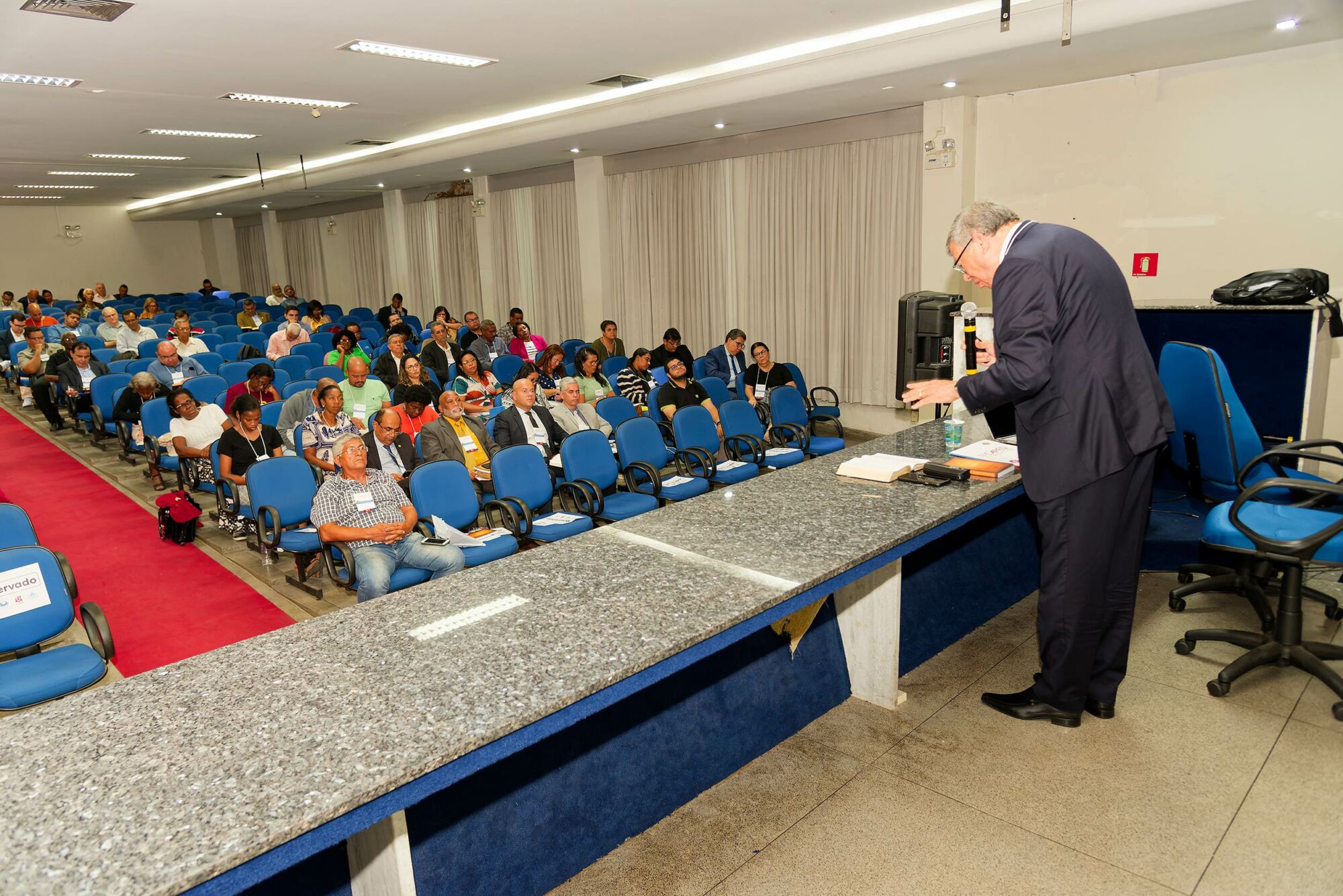 Professores atentos nas plenárias da tarde do primeiro dia do CAPED do Centenário