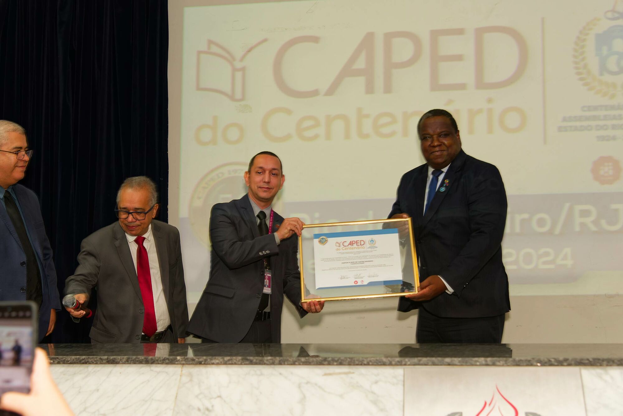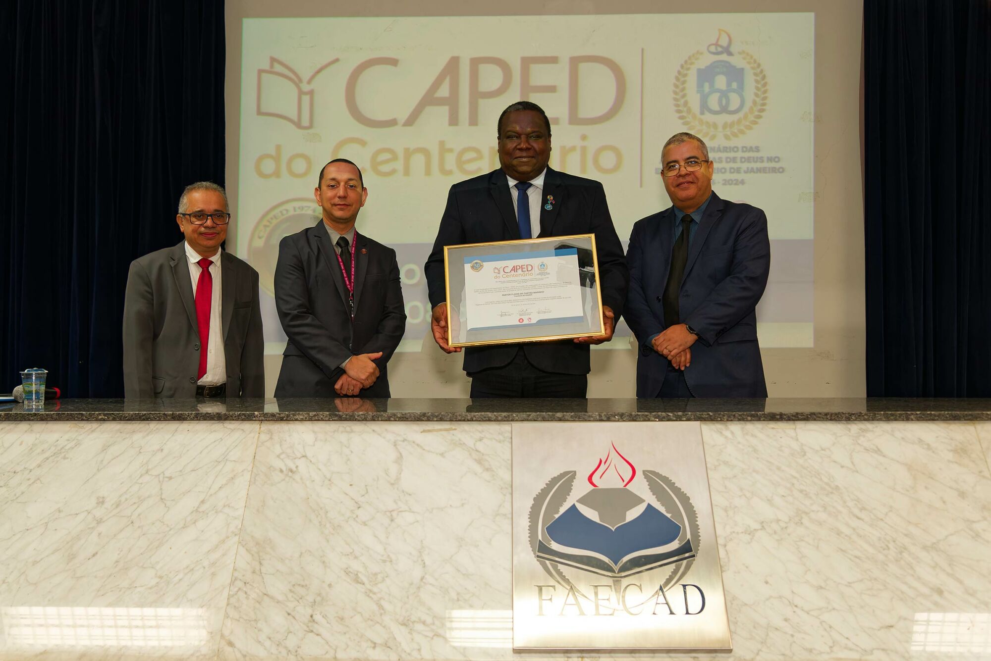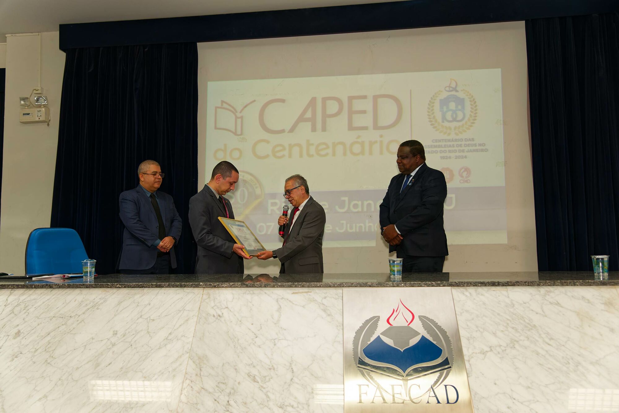 Após a primeira aula, o pastor Isael de Araújo homenageou o presidente da CEADER, pastor Flávio Marinho, com uma placa alusiva ao momento e agradeceu pelo apoio. Em suas palavras, o pastor Flávio agradeceu à liderança da CGADB e CPAD em nome da CEADER. “A honra é a glória à Ele pertence”, disse.