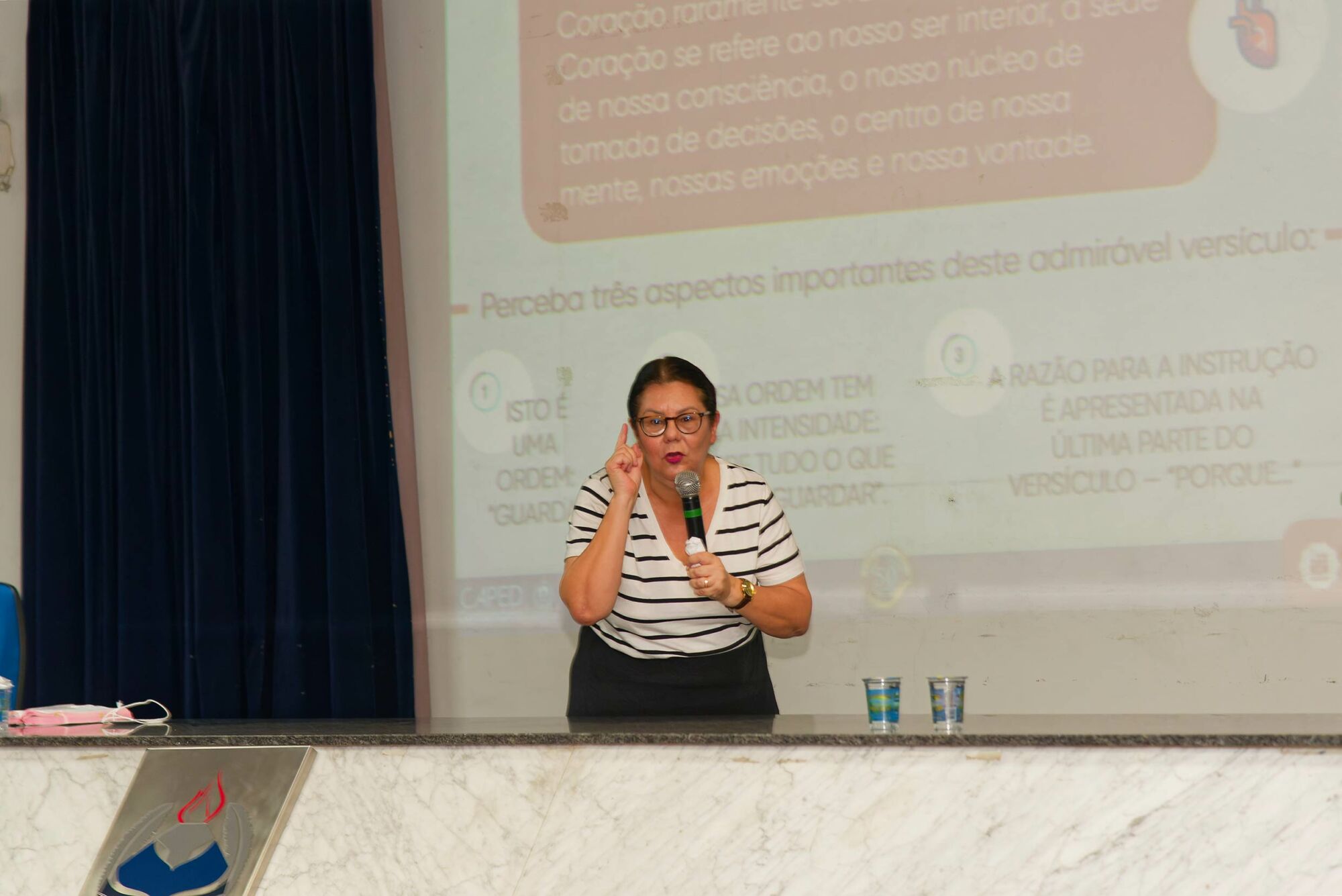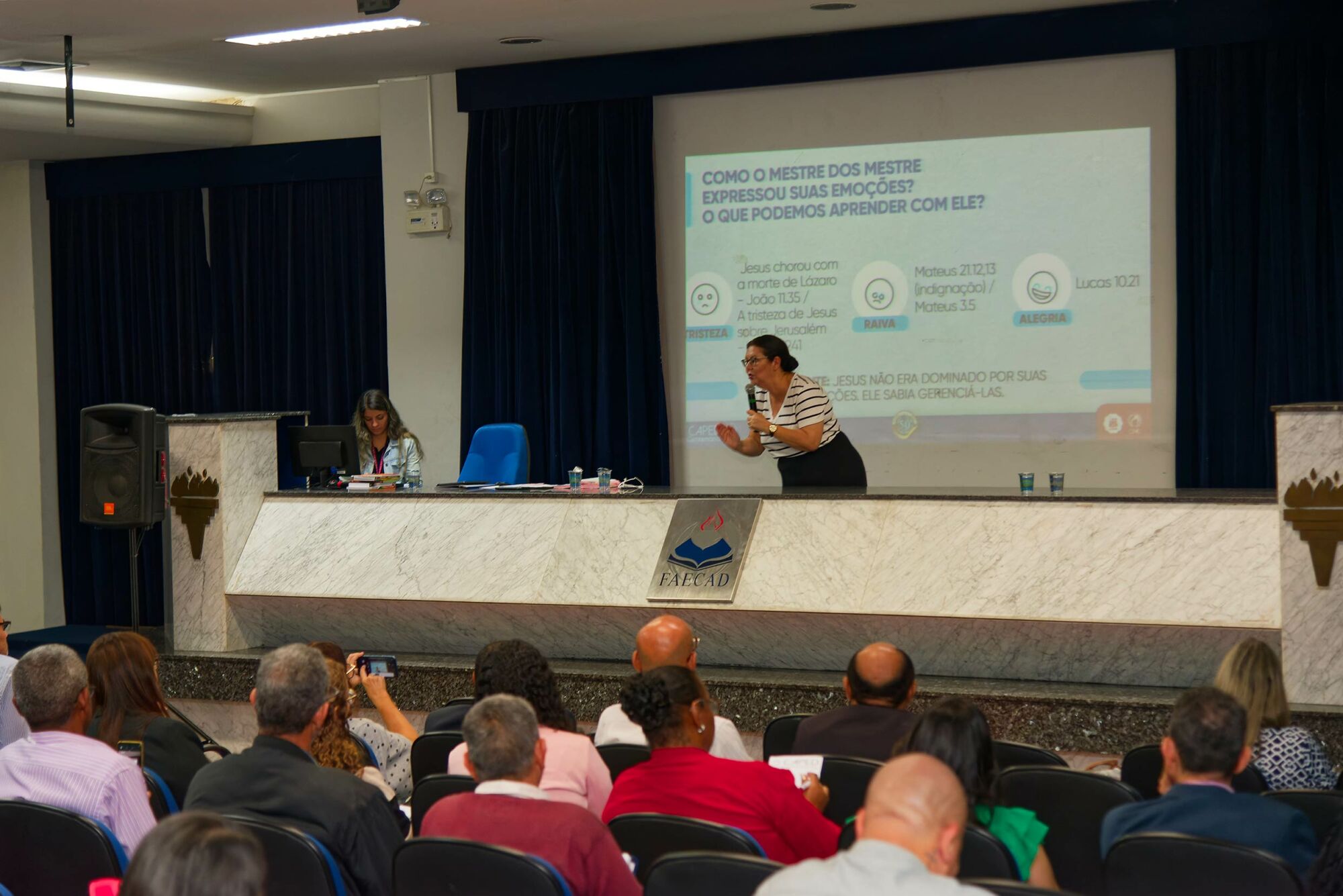 Telma explicou que entendendo sobre Inteligência emocional, podemos compreender como se dá as emoções e os sentimentos. A professora também destacou que é necessário o professor ter esse equilíbrio para lidar com os seus alunos. “Não basta ter conhecimento só de Teologia e Bibliologia, temos conhecer outros assuntos. Vamos para um exemplo bíblico, Moisés era instruído em toda ciência, era um homem culto, mas não soube lidar corretamente com sua emoção e sentiu raiva e matou o egípcio. Quer ter saúde emocional, aprenda a gerenciar as emoções”.
