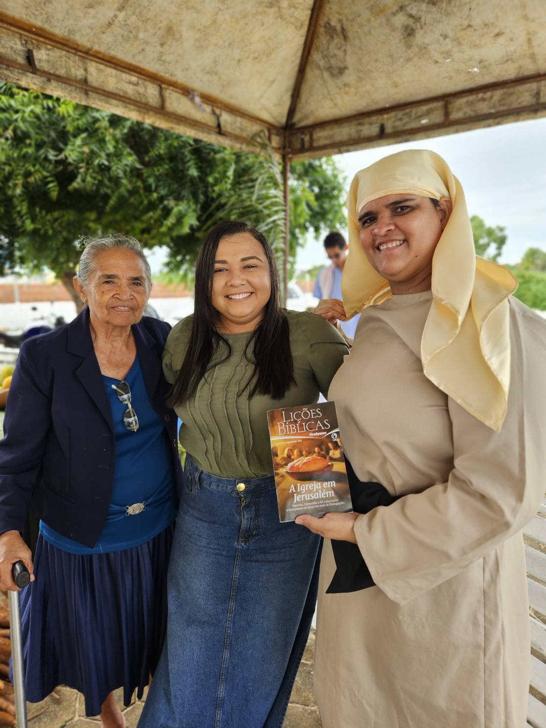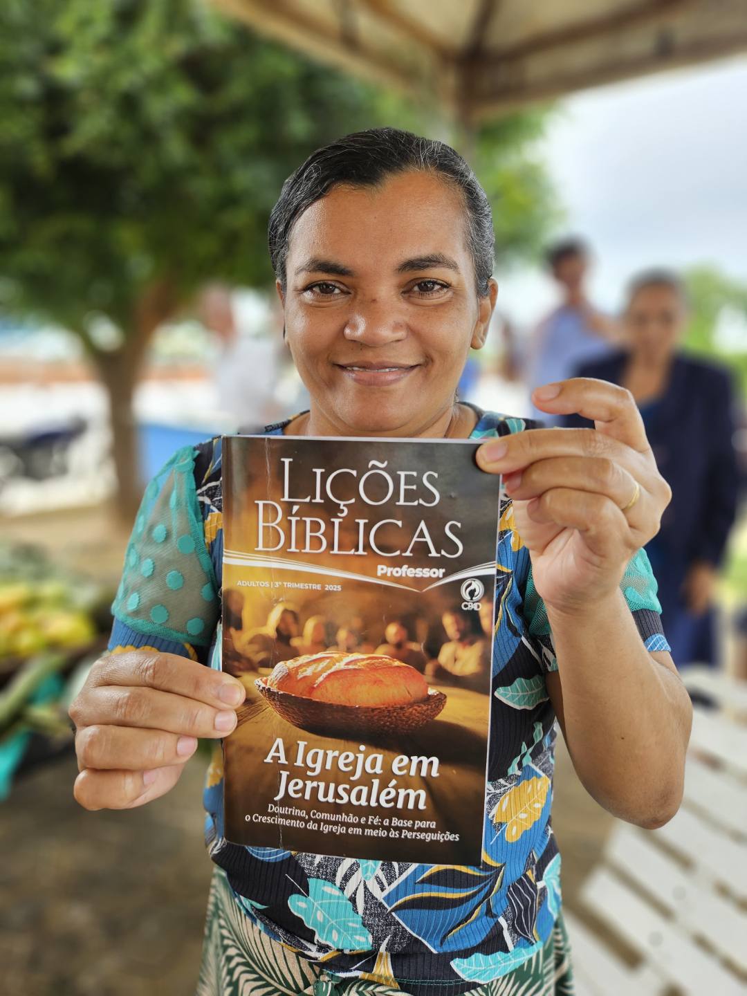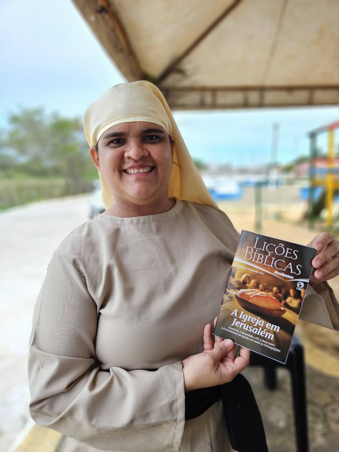 No primeiro domingo de julho (06), os alunos se reuniram em uma praça para assistir a primeira aula do terceiro trimestre de 2025, que falava sobre a igreja que nasceu no Pentecostes. “O povo estava em Jerusalém na festa do Pentecostes ou da colheita, como também é chamada, e aconteceu o episódio de Atos 2 surgindo assim a Igreja do Senhor. Então fomos pra uma praça da cidade, montamos o cenário da festa da colheita, um café da manhã com comidas específicas, exposição de frutos da terra, uma caixa de som com barulho de um vento impetuoso na hora da descida do Espírito Santo. Foi uma aula maravilhosa”, contou a professora.